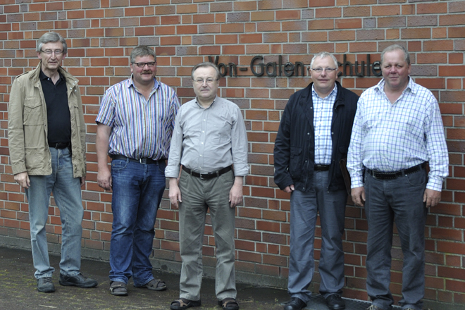Hausbesuch in der Von-Galen-Schule: (v. l.) Ewald Grothues, Robert Strübbe, Bernhard Hauke, Ludger Growe und Karl-Heinz Vögeler waren als CDU-Fraktion zu Gast in der Hauptschule.Anlass für den Besuch ist das Auslaufen der Hauptschule zum Sommer 2013. „Bürgermeisterin Elisabeth Kammann hatte den Eltern der Schüler zunächst zugesagt, dass der Erhalt der Schule solange gegeben sei, bis alle eingeschulten Schüler ihren Abschluss in Beelen gemacht hätten. Ihre Aussage wurde aber von den Tatsachen überholt“, heißt es in einer Pressemitteilung. Ebenso war es nicht möglich, eine Sekundarschule in Beelen zu errichten. Nun stelle sich die Frage, was künftig mit diesem Schulgebäude geschehen solle. Dieses sei Grund genug für die CDU-Fraktion, sich das Gebäude durch eine Begehung noch einmal in seiner Gesamtheit vor Augen zu führen. Viele Möglichkeiten seien zu überdenken und zu überprüfen: Ob es Sinn mache, dass die Grundschule mit der Offenen Ganztagsschule dort einzieht oder ob der gesamte Komplex veräußert werden solle.
